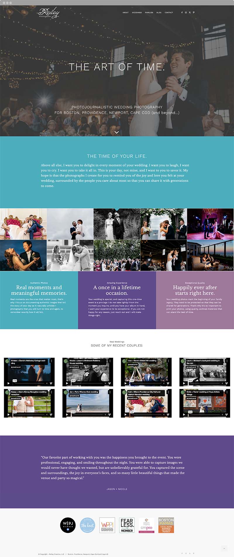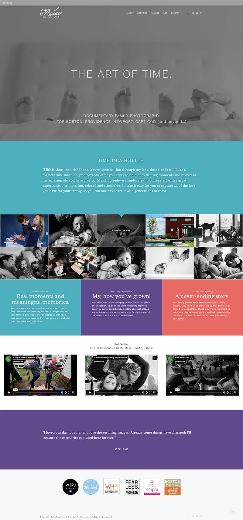 The Reiley Photography website wasn’t just built to showcase beautiful images—it was designed to connect with the right people. Thoughtfully structured and intentionally written, the site reflects the heart of the brand while guiding two very different audiences—families and weddings—through a personalized, emotionally attuned experience.